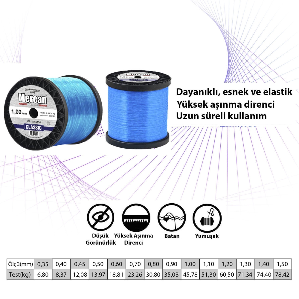 - Mercan Classic misina iyi çekiş gücü, düğüm mukavemeti ve ekonomik fiyat özelliği ile öne çıkmaktadır.