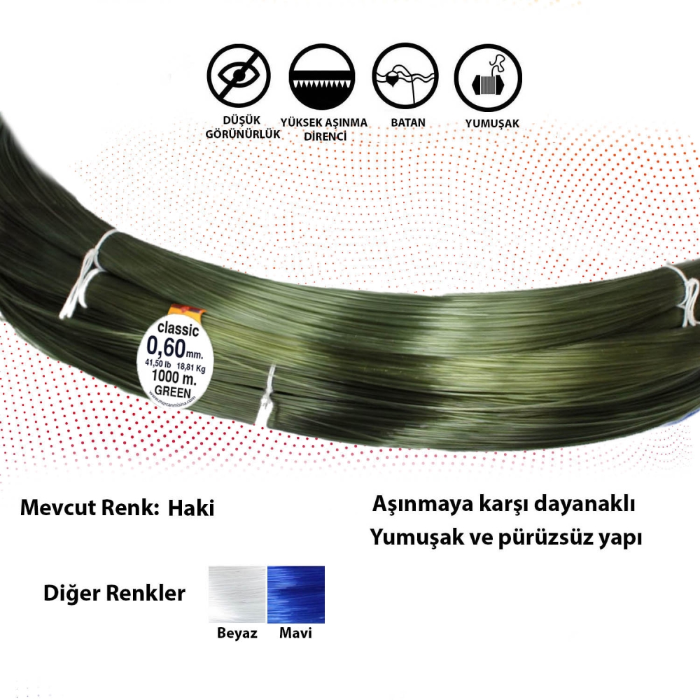 • Mercan Classıc misina iyi çekiş gücü, düğüm mukavemeti ve ekonomik fiyat özelliği ile öne çıkmaktadır.