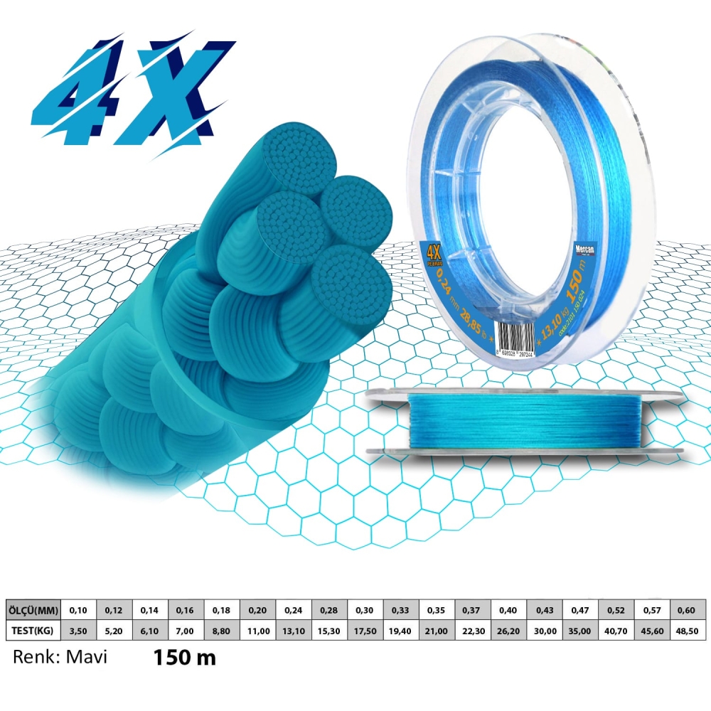 Mercan PE BRAID x4 150 M Makara ip Misina Beyaz