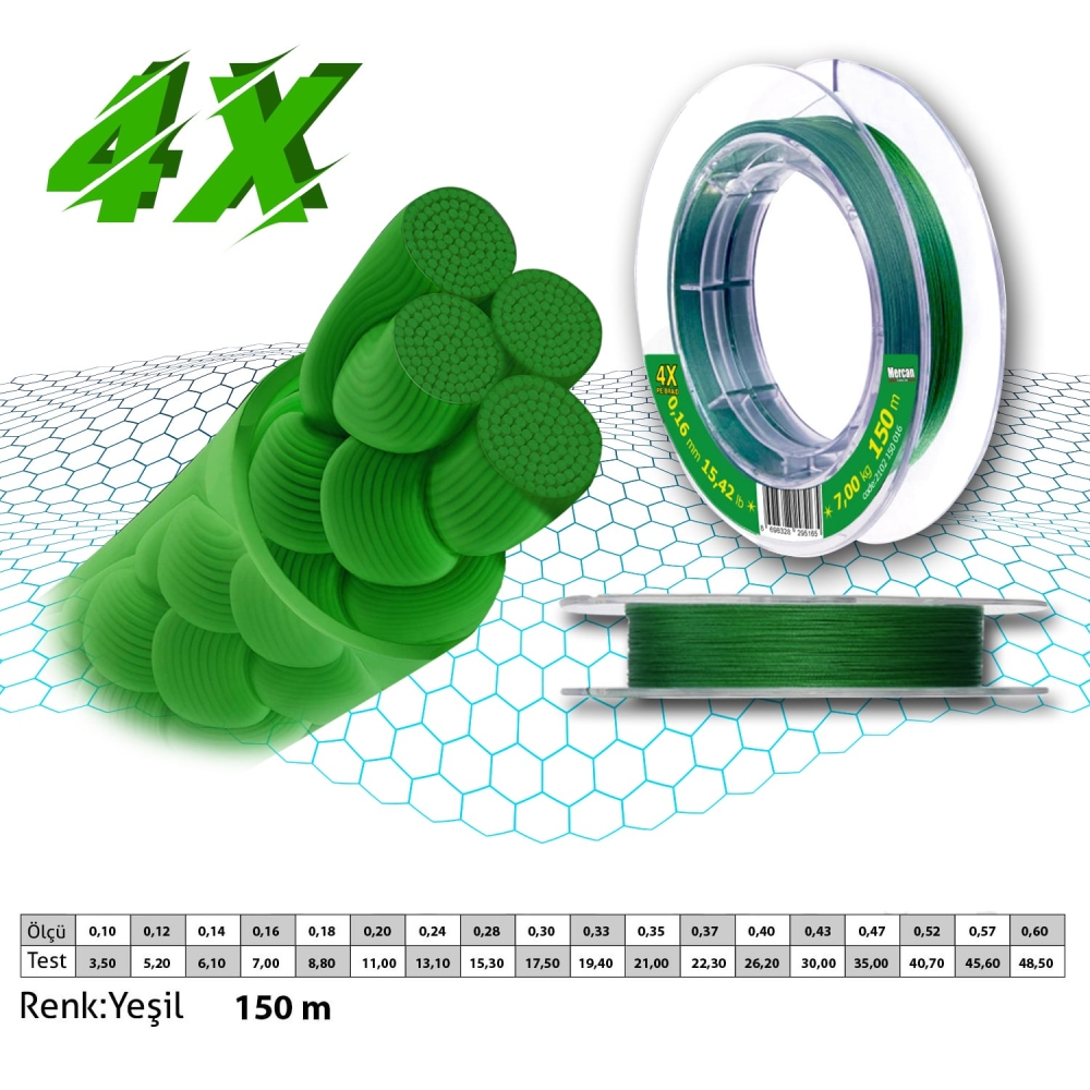 Mercan PE BRAID x4 150 M Makara ip Misina Yesil