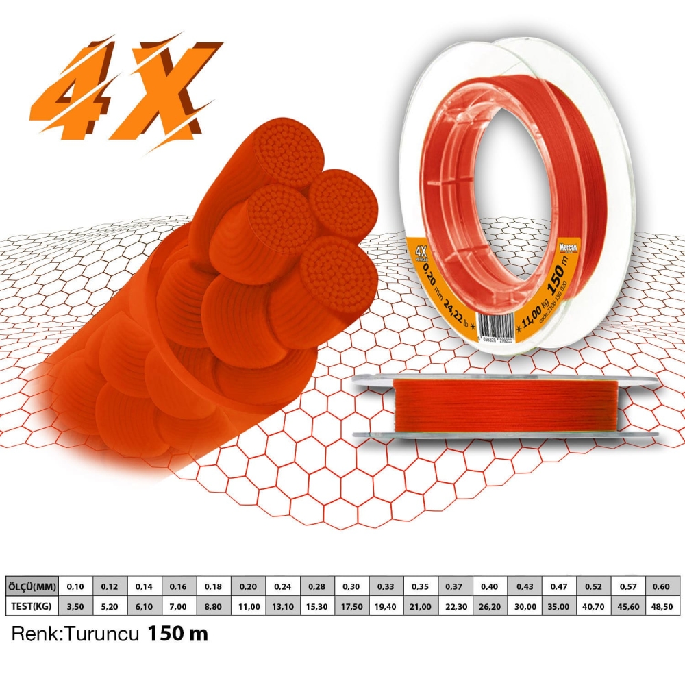 Mercan PE BRAID x4 150 M Makara ip Misina Turuncu