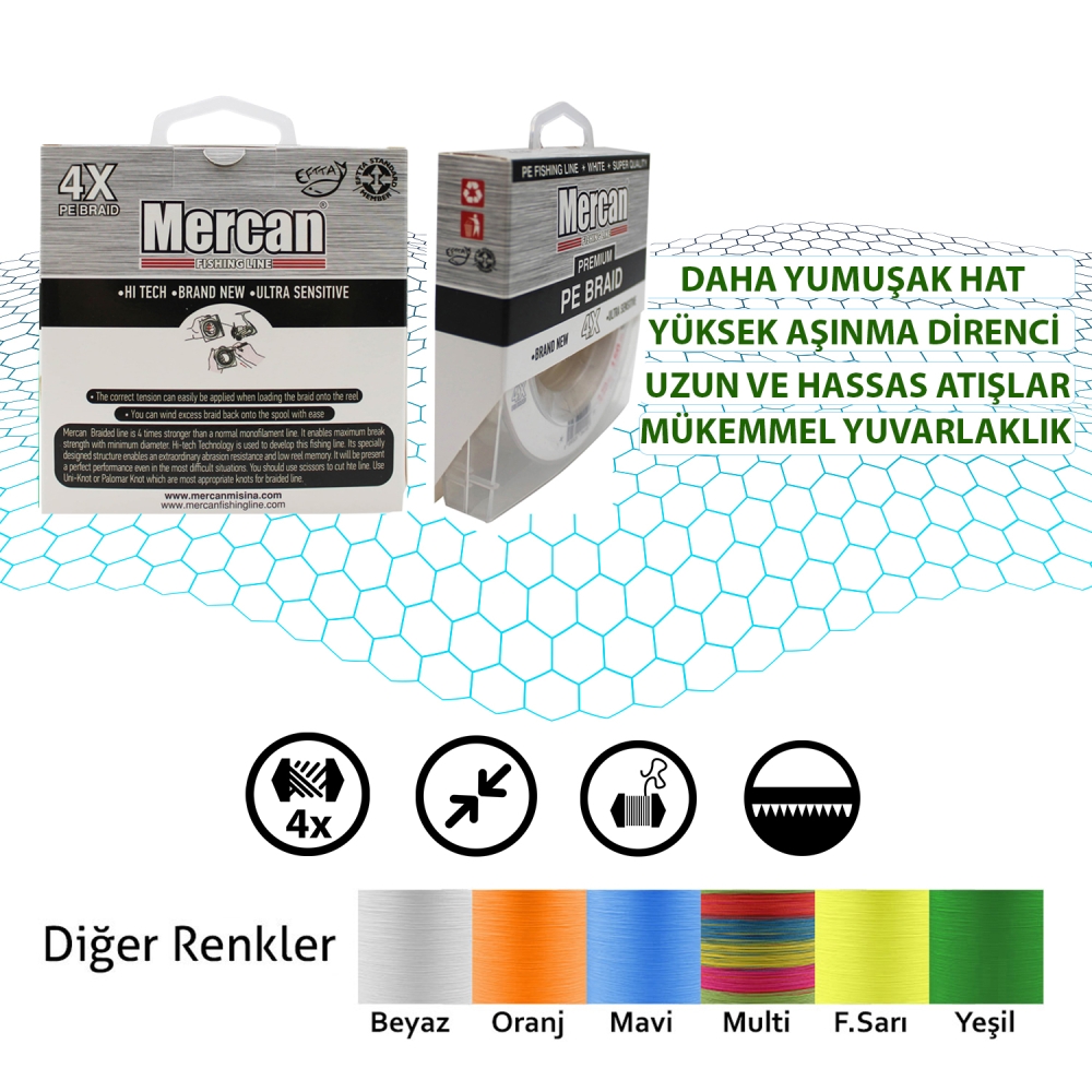 Mercan PE BRAID x4 300 M ip Misina Beyaz