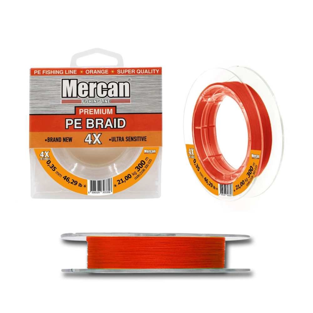 Mercan PE BRAID x4 300 M ip Misina Turuncu