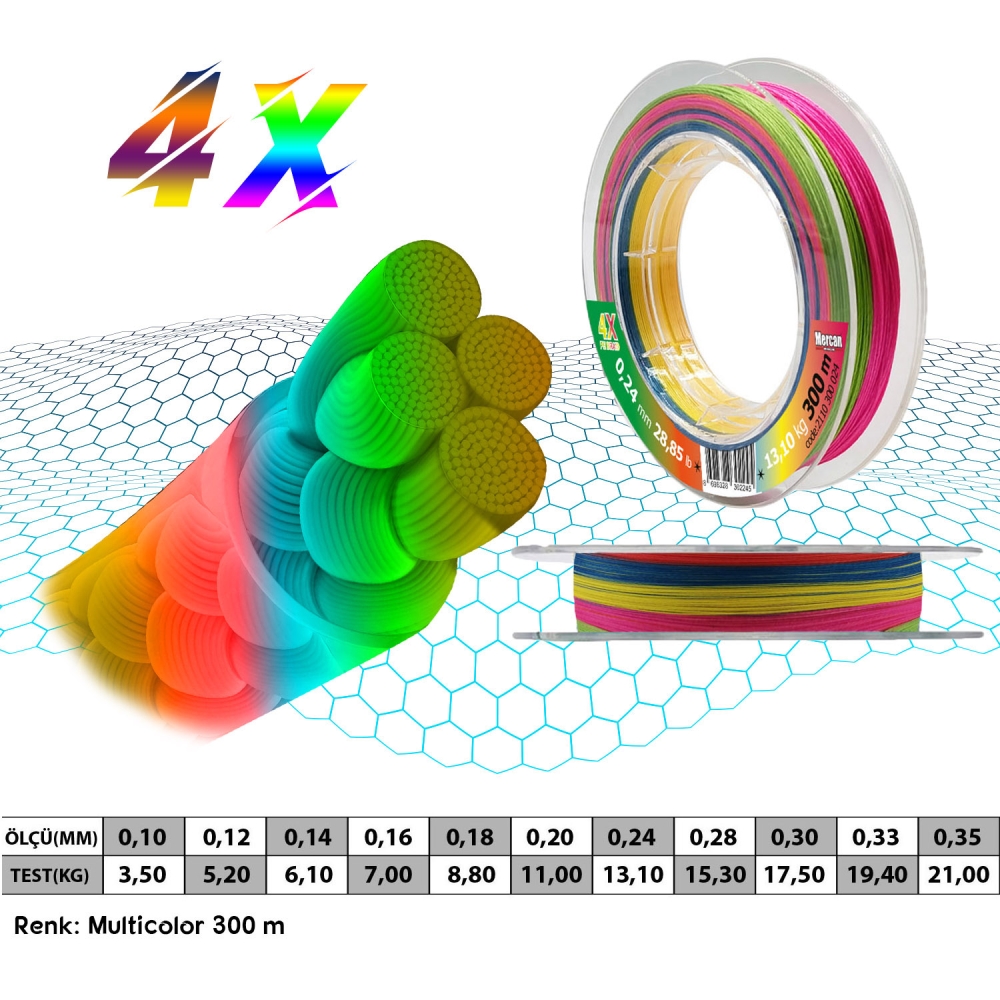 Mercan PE BRAID x4 300 M ip Misina Multicolor