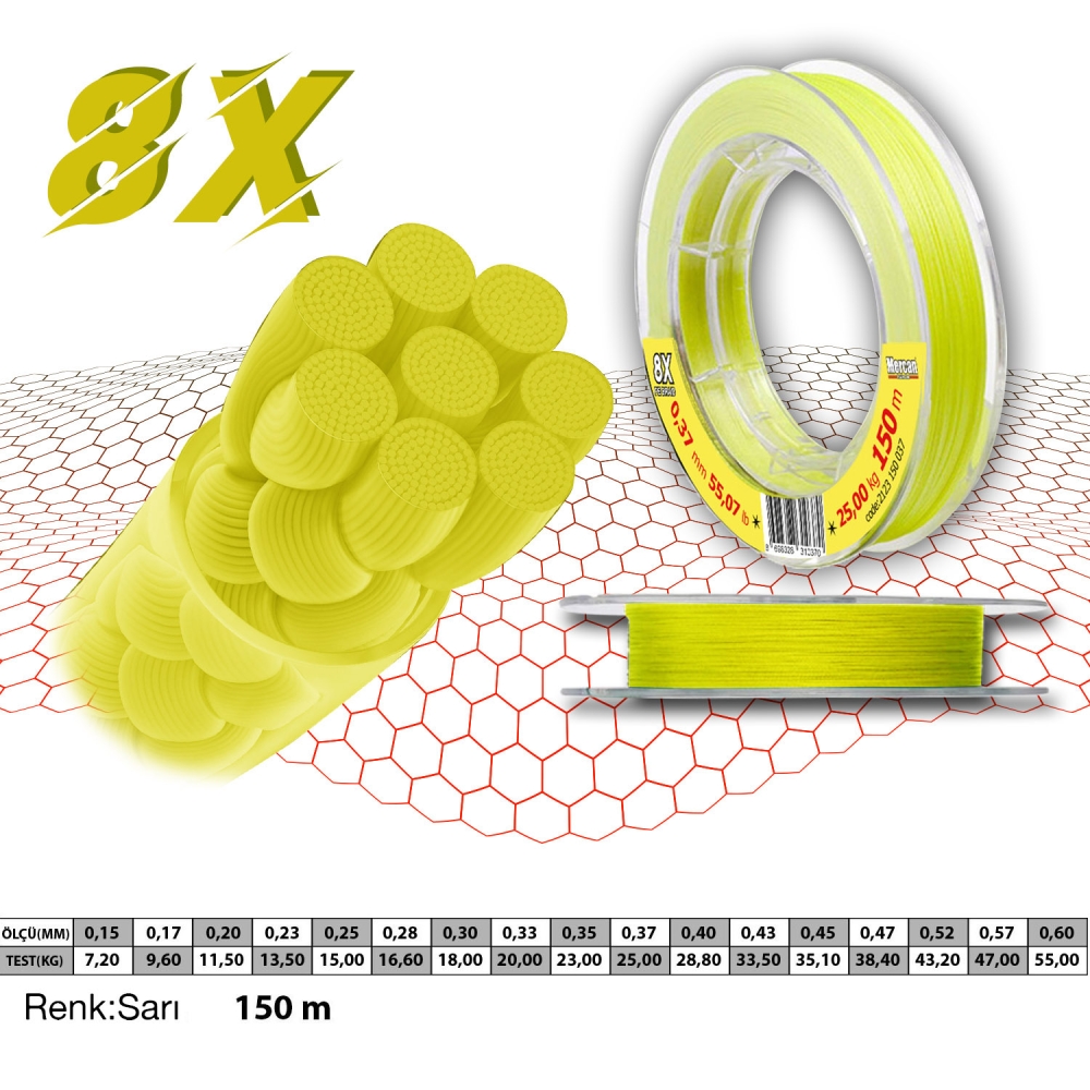 Mercan PE BRAID x8 150 M Sari ip Misina