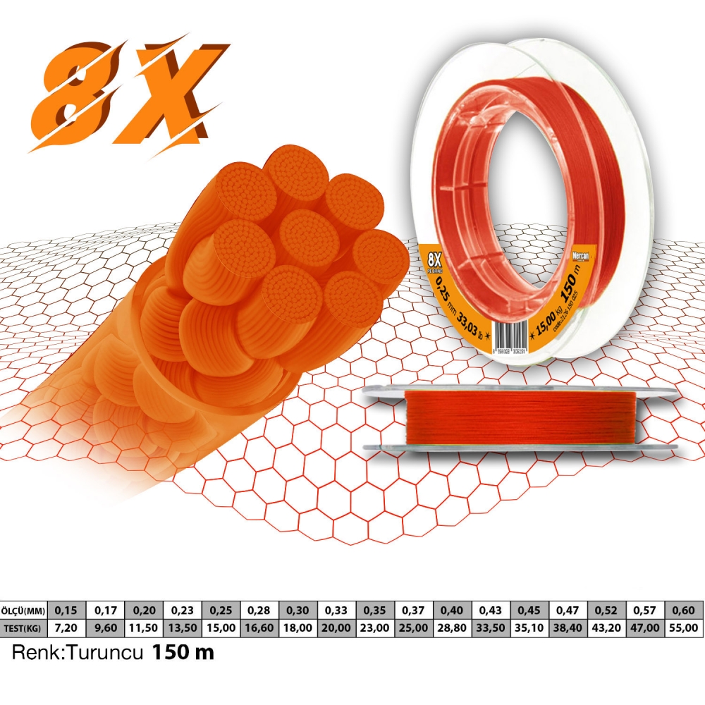 Mercan PE BRAID x8 150 M Turuncu ip Misina