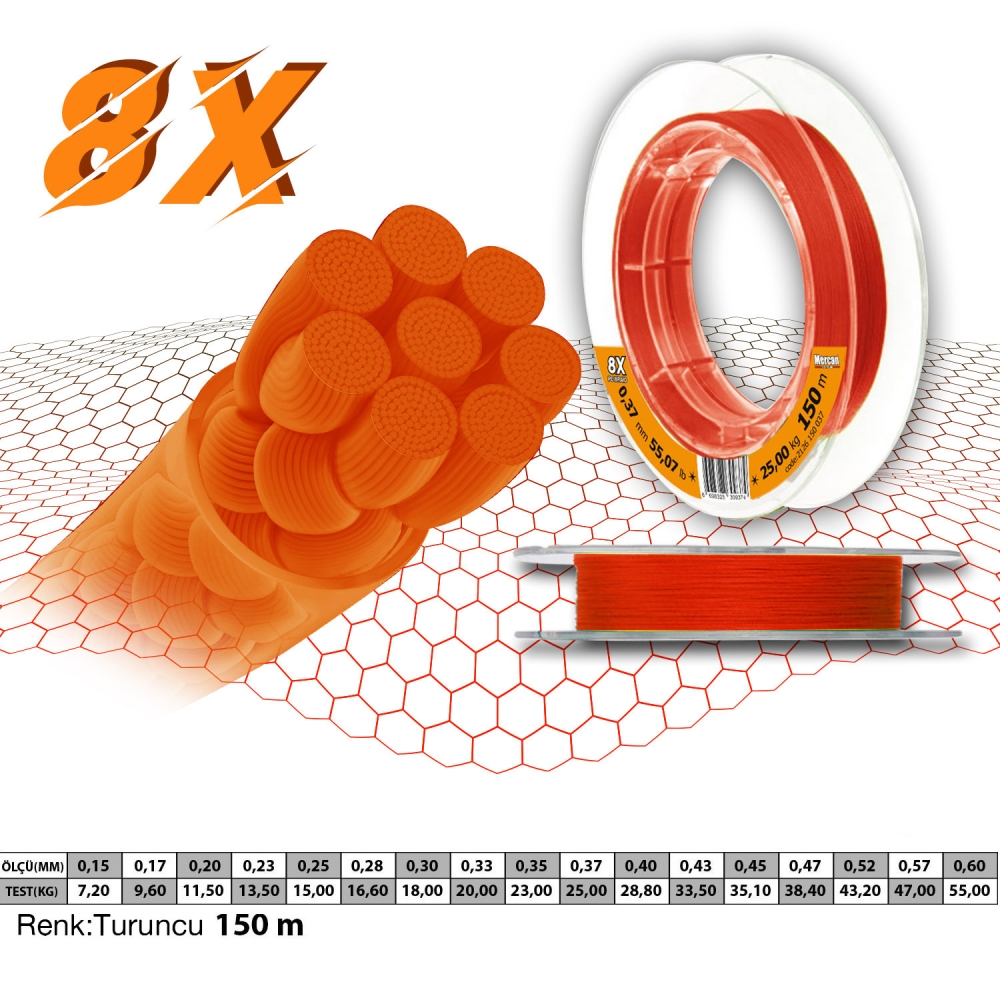 Mercan PE BRAID x8 150 M Turuncu ip Misina