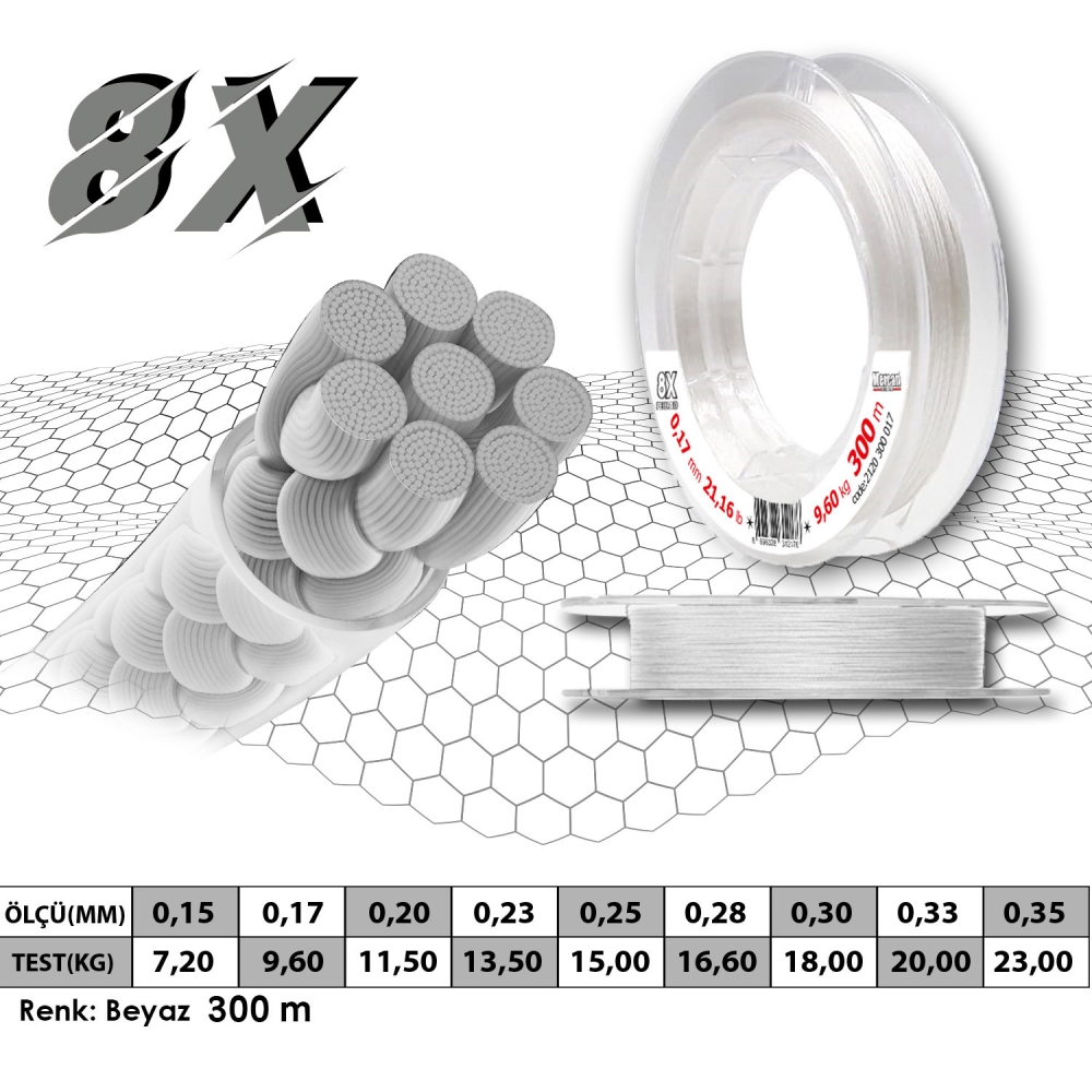 Mercan PE BRAID x8 300 M Beyaz ip Misina