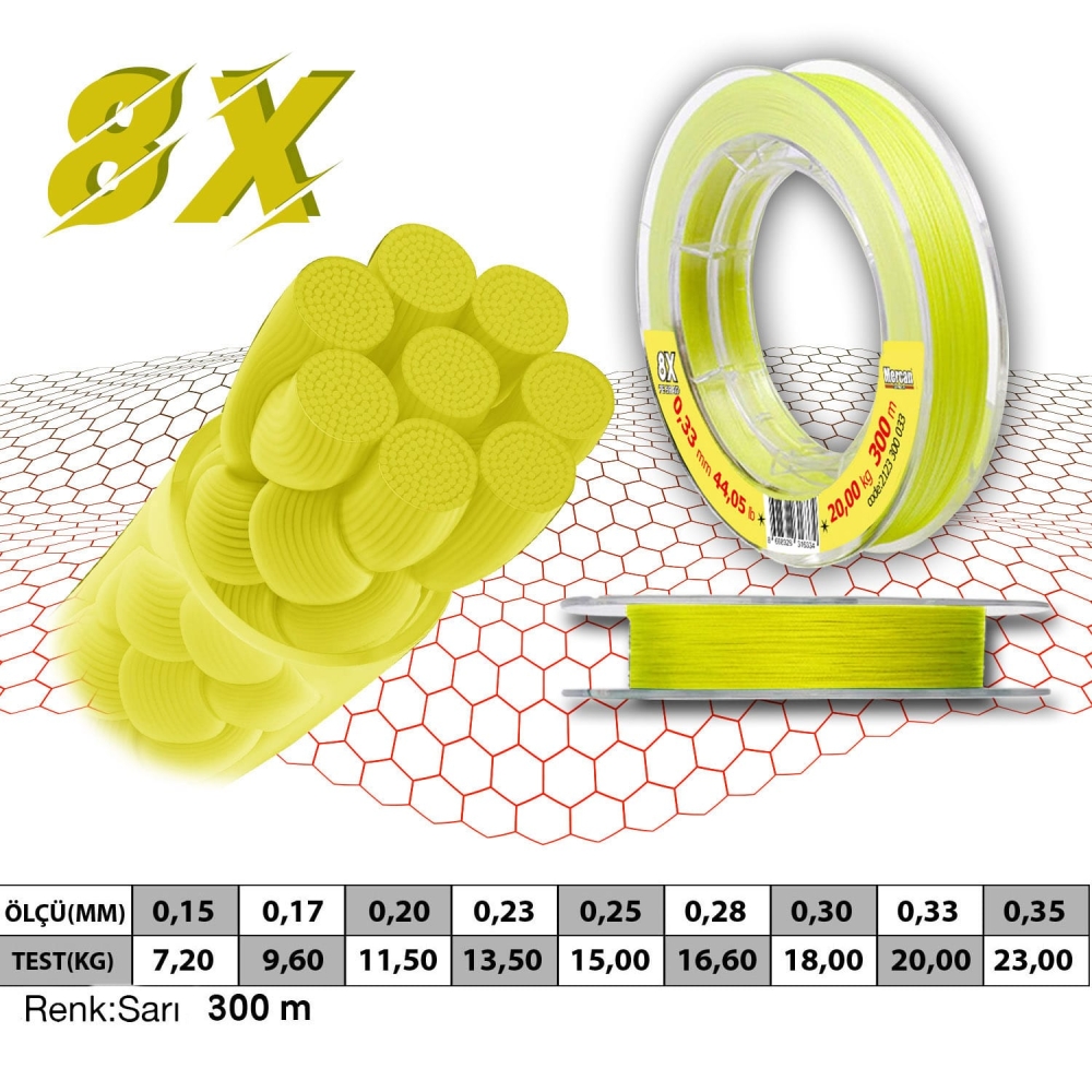 Mercan PE BRAID x8 300 M Sari ip Misina