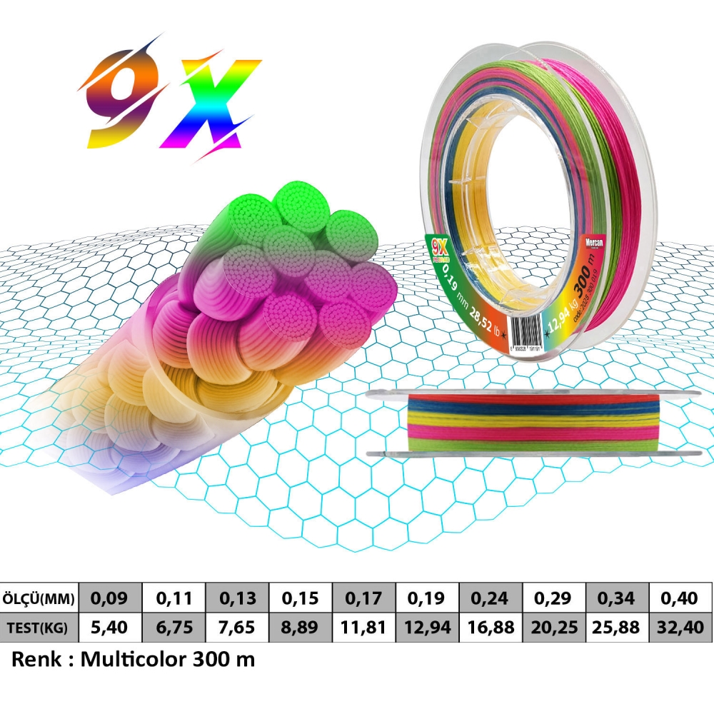 Mercan PE BRAID x9 300 M Multicolor ip Misina