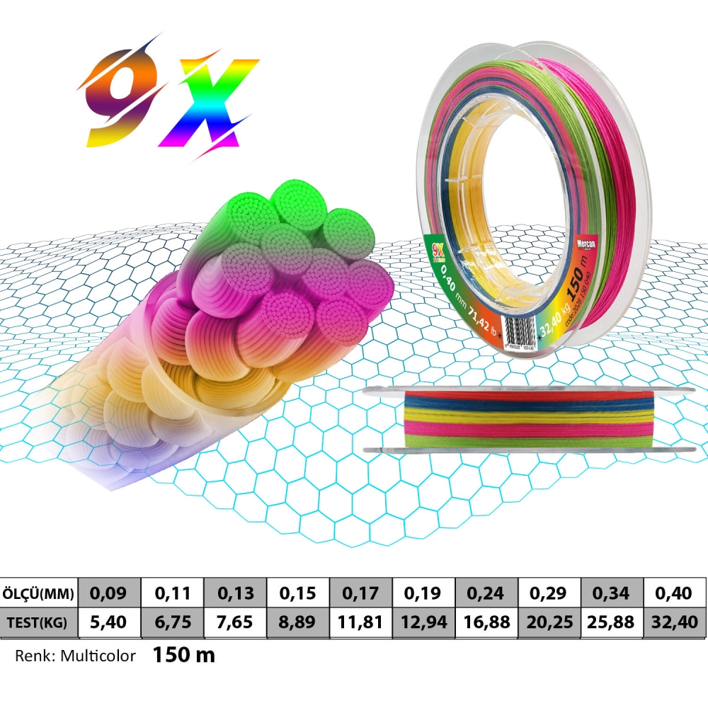 Mercan PE BRAID x9 150 M ip Misina Multicolor