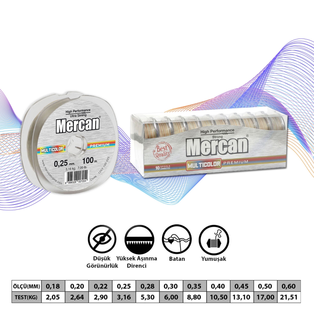 - Mercan Premium Multi monofilament diğerlerine göre aşınmaya ve düğüm mukavetine karşı dayanıklıdır.