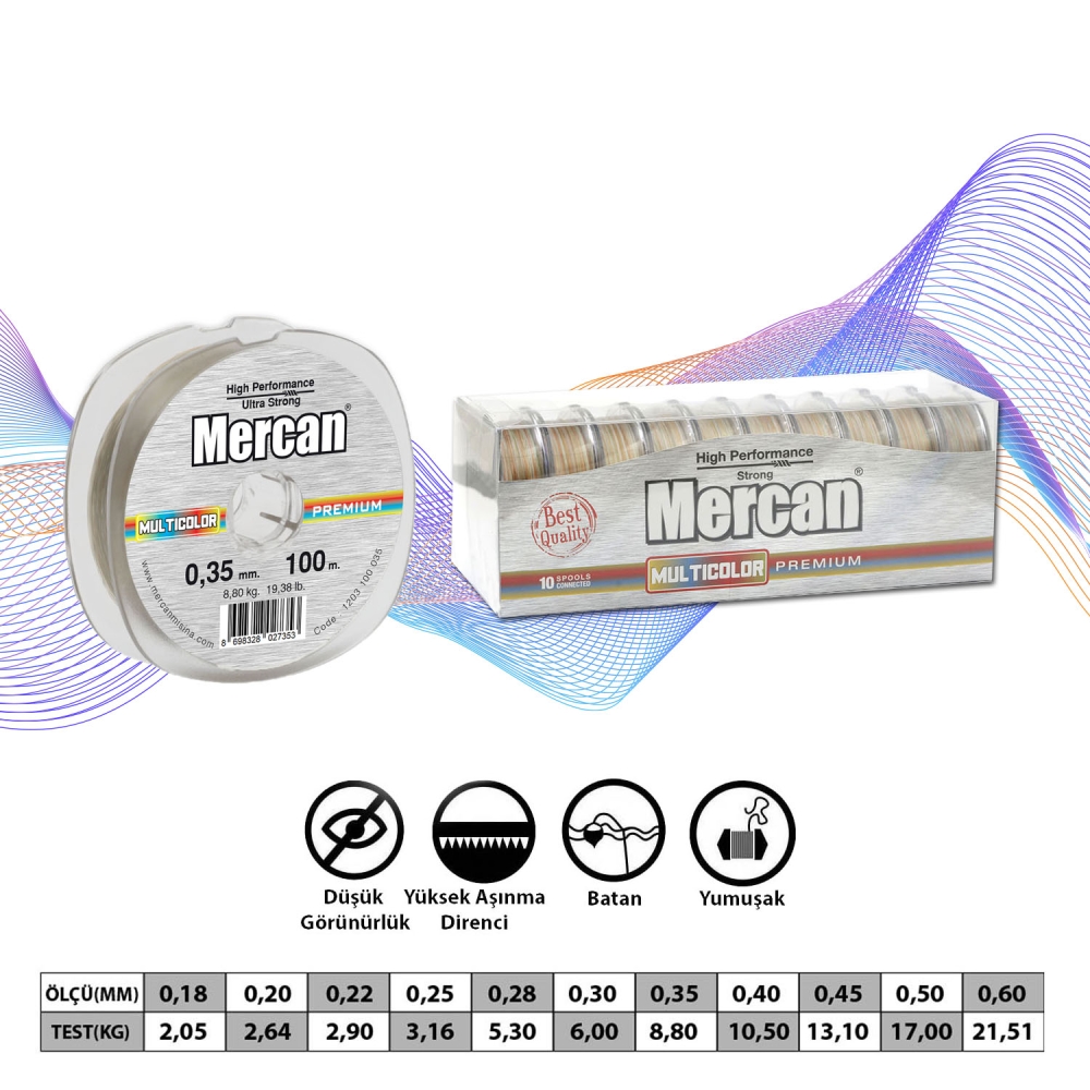 - Mercan Premium Multi monofilament diğerlerine göre aşınmaya ve düğüm mukavetine karşı dayanıklıdır.