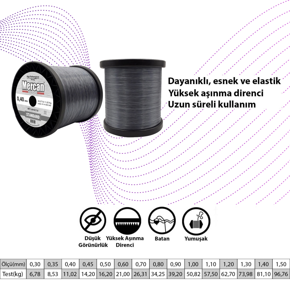 - Mercan Standart misina iyi çekiş gücü, ve dalga aşındırmasına karşı da iyi direnç gösterir.