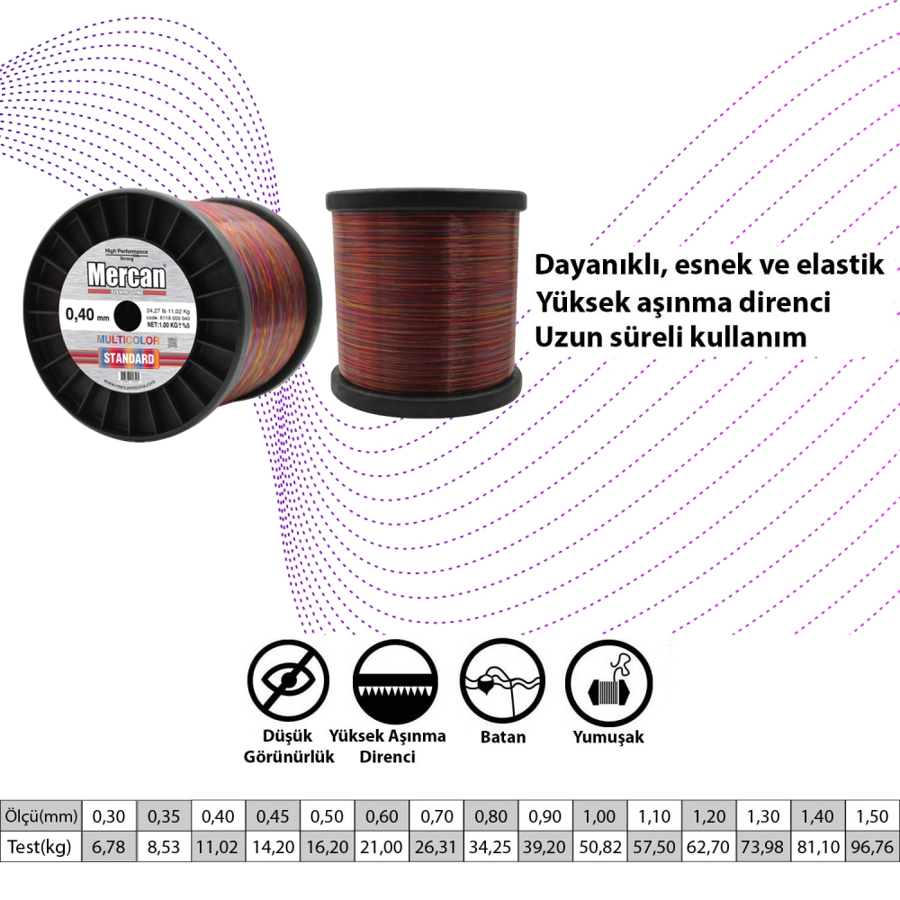 - Mercan Standart misina iyi çekiş gücü, ve dalga aşındırmasına karşı da iyi direnç gösterir.
