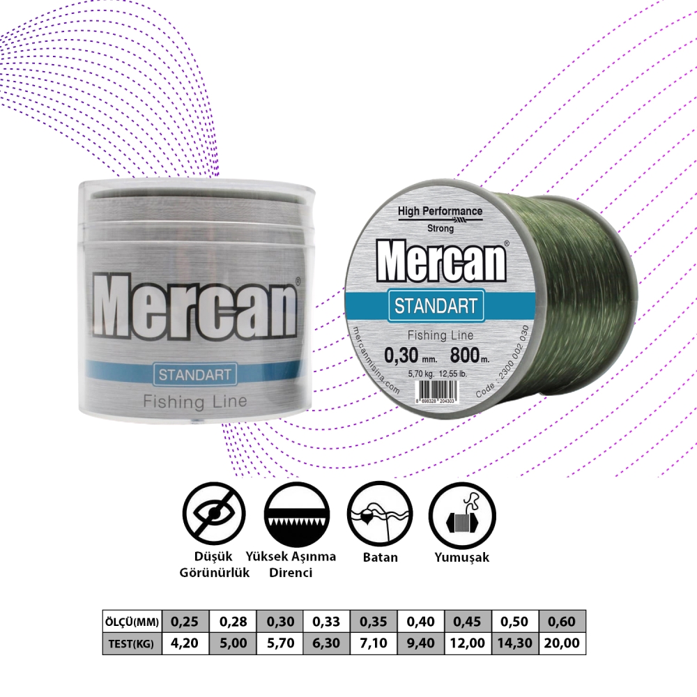 - Mercan standart misina ile tüm isteklerini karşılamak isteyen olta balıkçıları için bu misina kesinlikle doğru seçimdir.