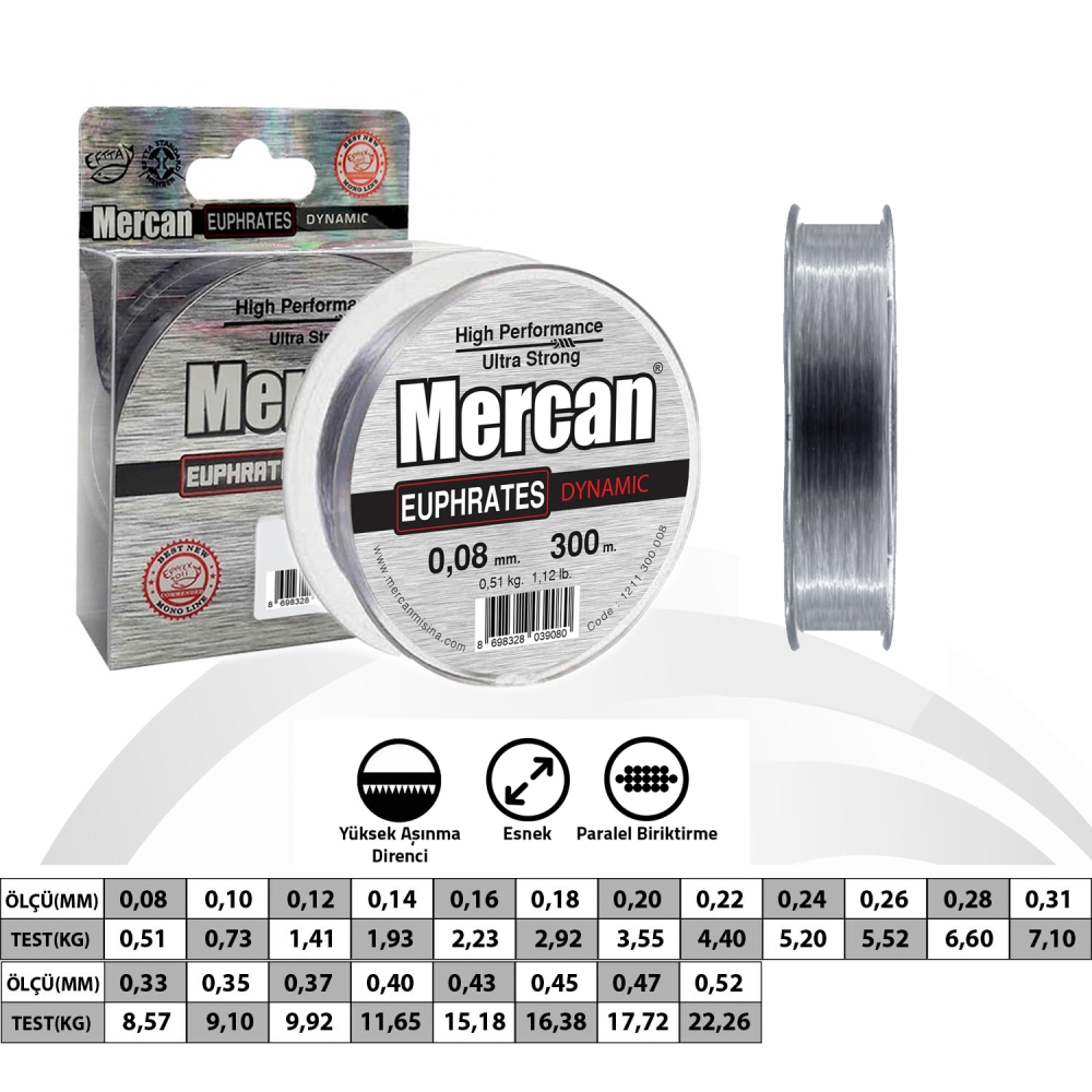 - Mercan Euprates Dynemic monofilament diğerlerine göre aşınmaya ve düğüm mukavetine karşı çok daha daya